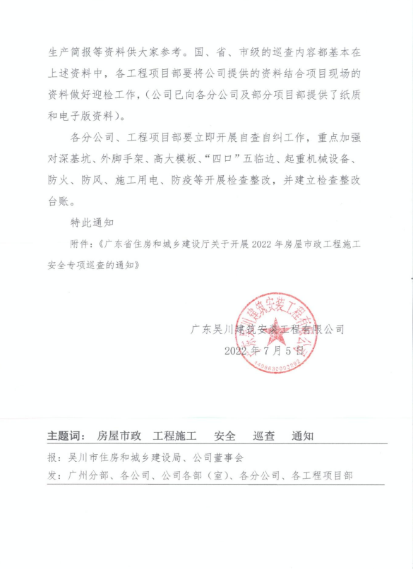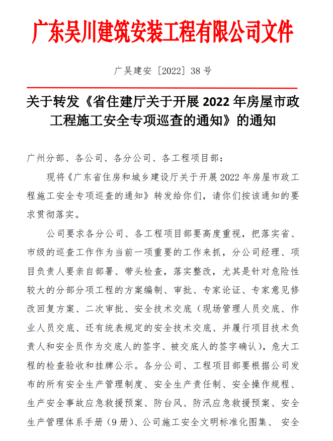 為認真落實《住房和城鄉(xiāng)建設部關于開展房屋市政工程安全生產治理行動的通知》(建質電〔2022〕19號)、《廣東省安全生產委員會關于印發(fā)<廣東省安全生產大檢查工作實施方案>的通知》(粵安〔2022〕6號)工作部署,進一步壓實建設各方安全生產主體責任,治理施工安全突出問題,切實提升全省施工安全管理水平,按照我廳今年重點工作任務安排,結合我省城市建設安全專項整治三年行動有關工作實際,我廳通過政府購買服務的方式,委托第三方專業(yè)機構,開展全省房屋市政工程施工安全專項巡查?,F將有關事項通知如下: